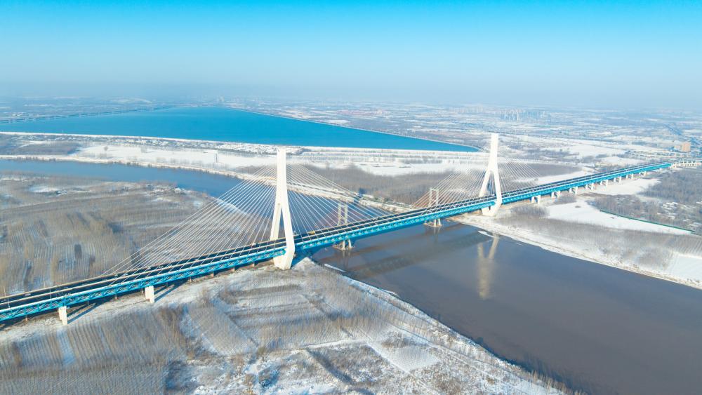 济南雪后初霁 黄河两岸银装素裹