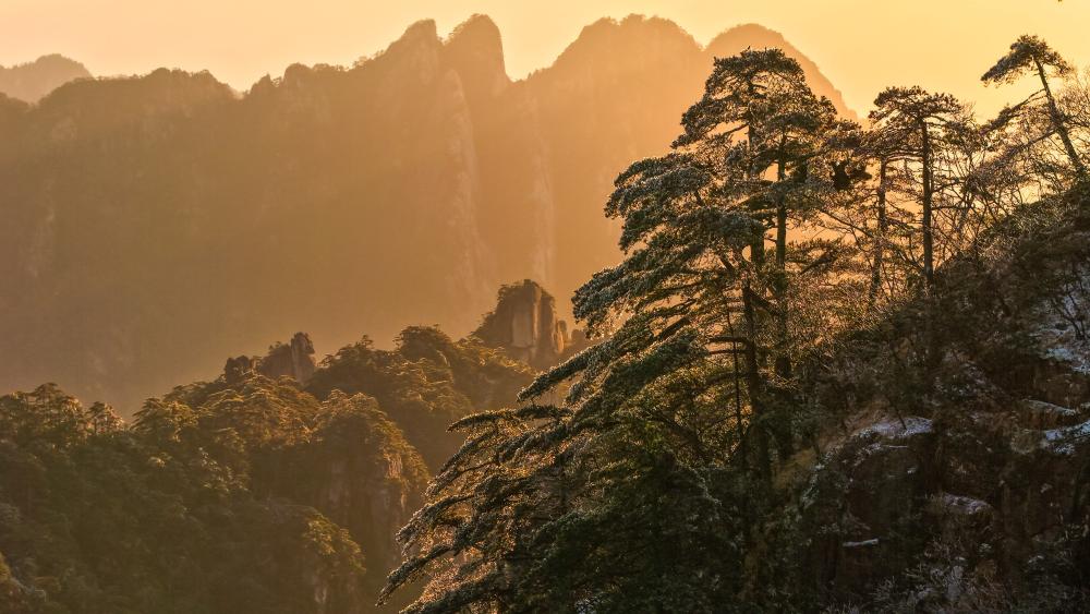 安徽黄山:雪霁日出映山峰