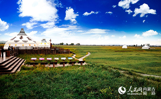 依托草原城市的青翠底色,呼和浩特旅游主打“草原”牌。图为呼和塔拉万亩草场。(资料图)