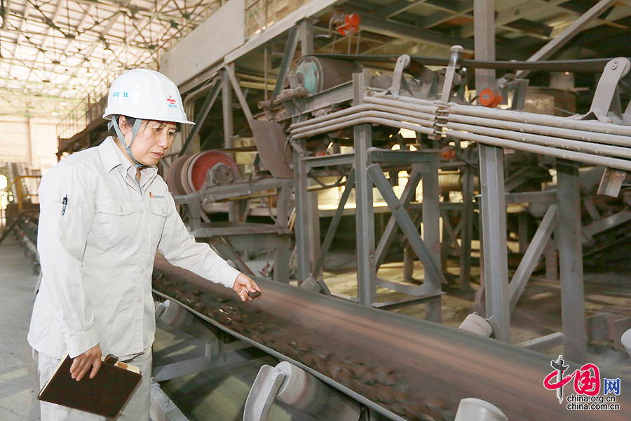 于淑娟深入尘泥利用生产现场了解生产运行情况。康成明摄影