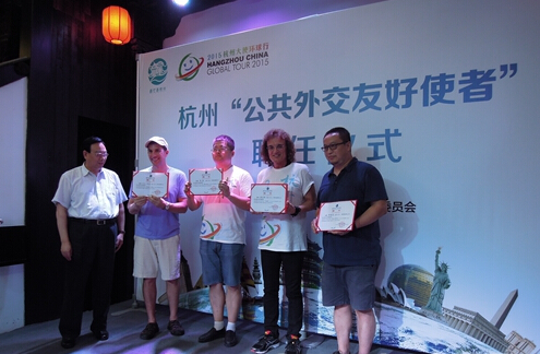 今年7月,中国的英文出租车司机周震家庭,美国加州音乐人卡帕尔迪家庭及中美各一名媒体达人,被杭州市正式聘任为“杭州公共外交友好使者”,共同横跨亚欧、美洲大陆,途径7个国家、8座城市,环球旅行30天。美籍“大使”多梅尼科·卡帕尔迪说,在杭州,没有外国人,只有家人和朋友。