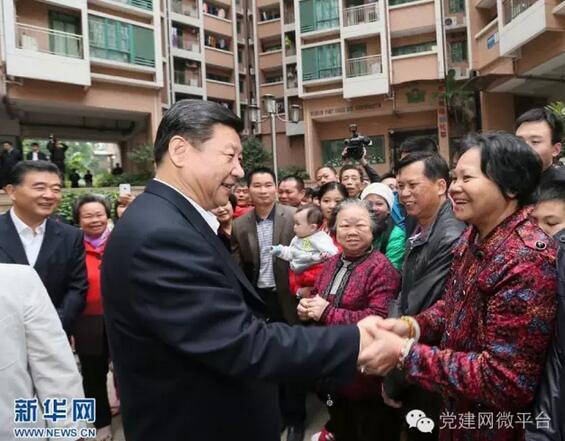 2012年12月7日至11日,习近平在广东省考察工作,这是在深圳罗湖区南湖街道渔民村社区考察时与居民握手交谈。
