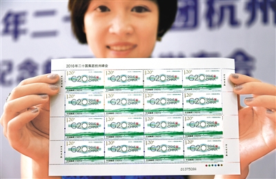 中国邮政将于8月27日发行《2016年二十国集团杭州峰会》纪念邮票。