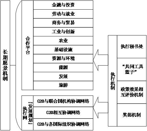 一个顶层机制是“长期愿景机制”,负责制定并指导G20增长战略的实施。“长期愿景机制”的操作方式可以是先形成一份“G20经济发展愿景”文件,确立五年期发展目标。此后,在领导人峰会、协调人(Sherpa)会议、部长及副部长级会议都经常予以修订并讨论如何实现。
