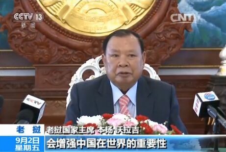 老挝国家主席 本扬·沃拉吉:我感到非常高兴和荣幸受习近平主席的邀请,参加这一届G20杭州峰会,这次峰会非常重要、很受重视,会增强中国在世界的重要性,特别是将为落实会议成果作出贡献。