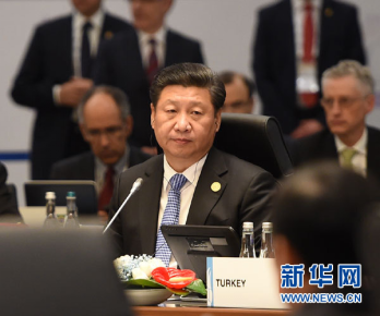 2015年11月15日,二十国集团领导人第十次峰会在土耳其安塔利亚举行。国家主席习近平出席并发表题为《创新增长路径共享发展成果》的重要讲话。这是习近平出席第一阶段会议。 新华社记者李学仁摄