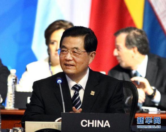 2012年6月18日,时任国家主席胡锦涛在墨西哥洛斯卡沃斯出席二十国集团领导人第七次峰会并发表重要讲话。 新华社记者 兰红光 摄