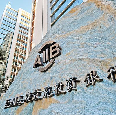亚投行总部大楼前的标识。 资料照片