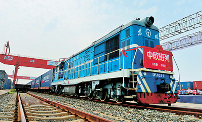 西安至华沙中欧国际货运班列。姜 峰 唐振江摄影报道