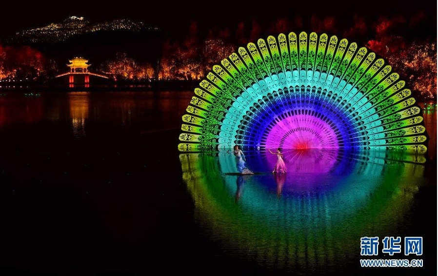 演出画面充满了工笔水墨画的效果。50分钟的演出里有100个以上的灯光变化,色彩典雅不张扬,刻画了一个诗情画意的氛围。另外,临近中秋佳节,月亮也成为演出中的一个重要元素,花好月圆、美满团圆也是中国人的传统祝愿和祈福。
