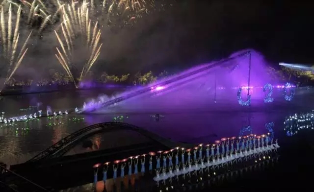 宴会后,习近平和彭丽媛同贵宾们一同乘船,前往西湖岳湖观看主题为《最忆是杭州》的文艺晚会。