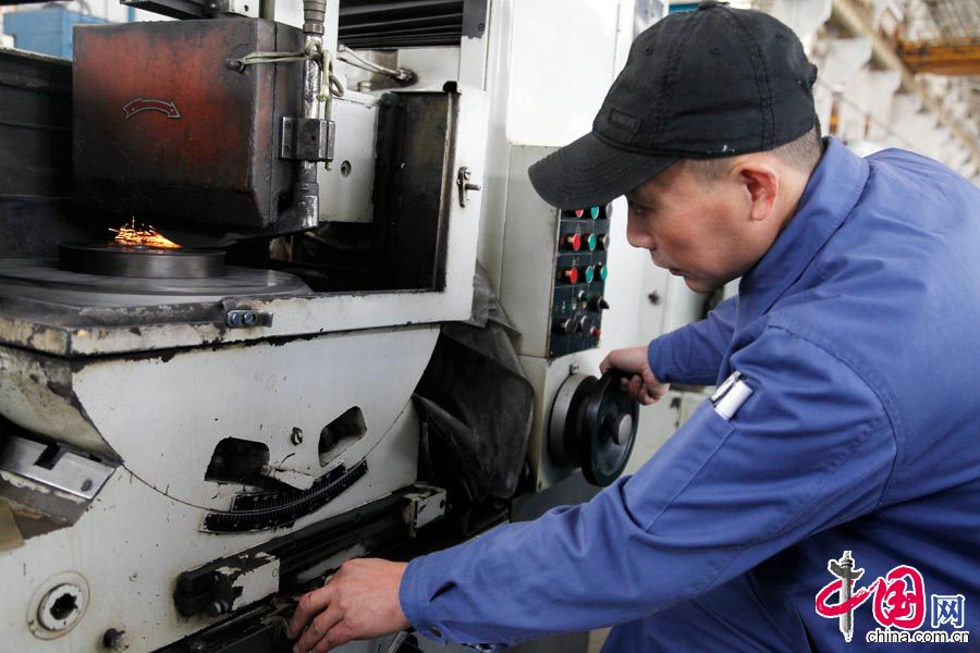 回忆起当年的学徒经历,魏红权说:“师从全国劳模余维明老师,我是幸运的,有这么一位技术精湛的老师傅亲自传帮带,我没有理由不好学、不干好。”图为圆平面磨削加工。 中国网 李佳摄影