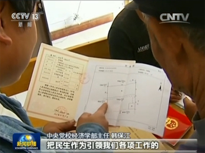 山东滨州王家庄村的村民张云华,刚刚拿到了自己的集体产权使用证,这些红本本第一次把他的承包地和宅基地从普通的生产生活资料变成了资产。目前,全国7.5亿亩农村土地已经完成确权,接近家庭承包耕地面积的60%,经营权流转交易市场在全国1000多个县设立。农民的财产收入不断增加。