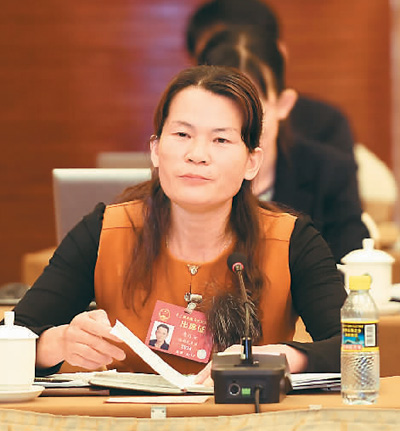 图为3月6日,黄月芳在海南代表团全体会议上发言。
