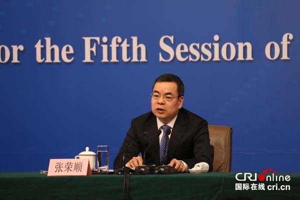 3月9日,全国人大常委会法工委副主任张荣顺就“民法总则草案”相关问题回答记者提问。摄影:易成晨