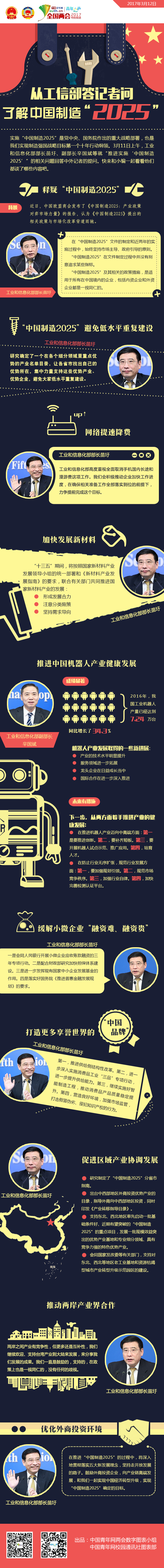 中国青年网北京3月11日电 实施“中国制造2025”是党中央、国务院作出的重大战略部署,也是我们实现制造强国战略目标第一个十年行动纲领。3月11日上午,工业和信息化部部长苗圩、副部长辛国斌等就“推进实施‘中国制造2025’”的相关问题回答中外记者的提问。快来和小编一起看看他们都谈了哪些内容吧。