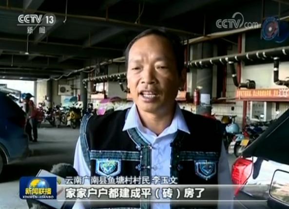 云南广南县鱼塘村村民 李玉文:我们党和国家对我们农村的少数民族发展也是很好了,路也修通了,也建成小康示范村了,家家户户都建成平(砖)房了。