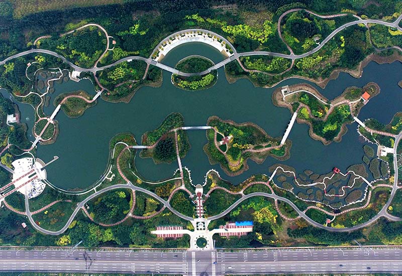 京津冀俯瞰天津滨海新区临港经济区的临港生态湿地公园(2016年10月21日摄)。 新华社记者 岳月伟 摄