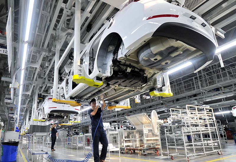 工人在北京现代沧州工厂总装车间生产线上工作(9月12日摄)。新华社记者 牟宇 摄