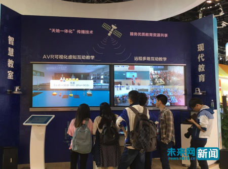 “同在蓝天下,共享优质教育”。在“以人民为中心,增进群众获得感”展区,许多结伴前来观展的大学生们被互动展示区的“智慧教室”所吸引,通过一个远程多地互动教学系统,可以打通北京和新疆、云南等地的小学课堂,让身处偏远地区的孩子也能享受和北京的孩子们一样的优质教育资源。一位学生说,“我就是在北京郊区的学校上学,以前我们这边教学条件还是比较简陋的,没有比较好的老师,但是互联网的迅速发展也带动了在线教育,我们通过网络就可以轻松地看到很多优质课程。”
