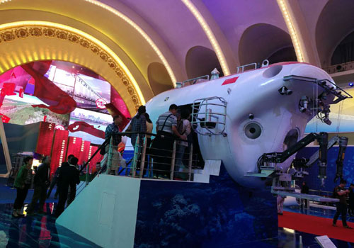 28日当天展览临近结束,“蛟龙号”参观体验区观众依然在排队。记者张雪花 摄