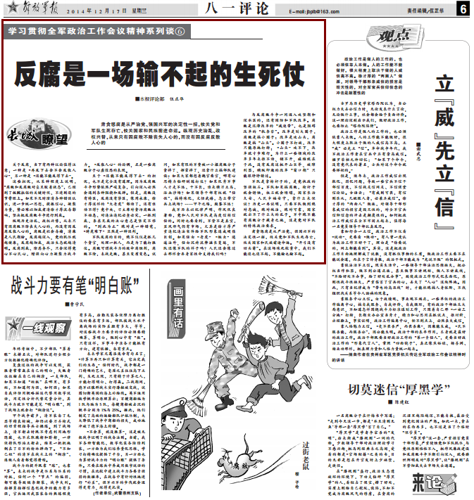 建设强大军队,反腐这道“坎”必须迈过。