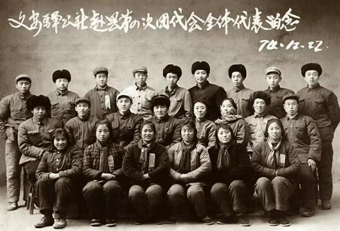 1974年12月,延川县召开第四次团代会。习近平(后排右四)与文安驿公社参加团代会的全体代表合影留念。