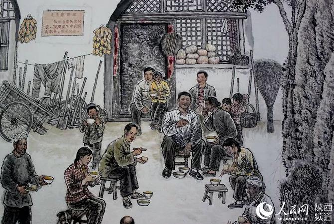 陕西户县农民画中的梁家河(来源:人民网陕西频道)
