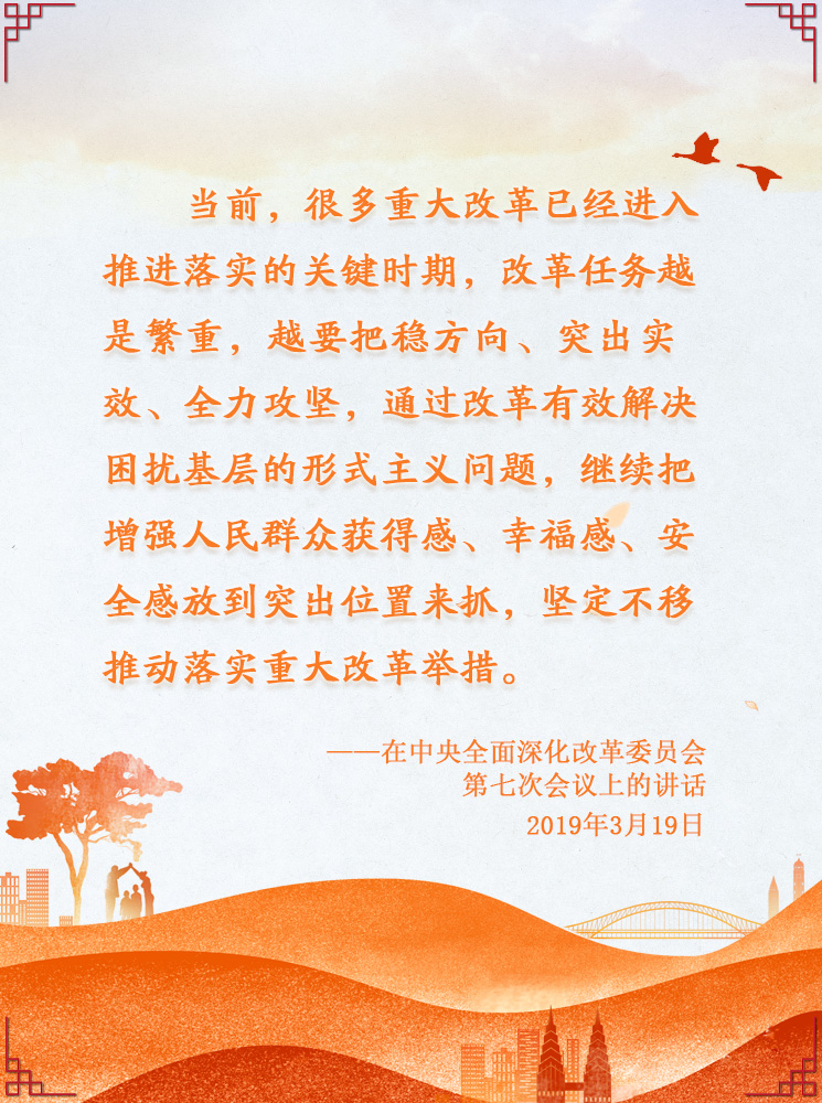 联播+2019年3月19日,习近平主持召开中央全面深化改革委员会第七次会议并发表重要讲话,强调“继续把增强人民群众获得感、幸福感、安全感放到突出位置来抓,坚定不移推动落实重大改革举措”。