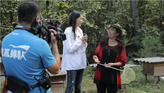 在第二分会场,讲述人家怡带领观众走进耖家庄村的“中蜂基地”,为我们讲述了曾经的贫困户蒋大姐如何借助国家政策、入股村集体经济合作社等多种途径成功脱贫的故事。