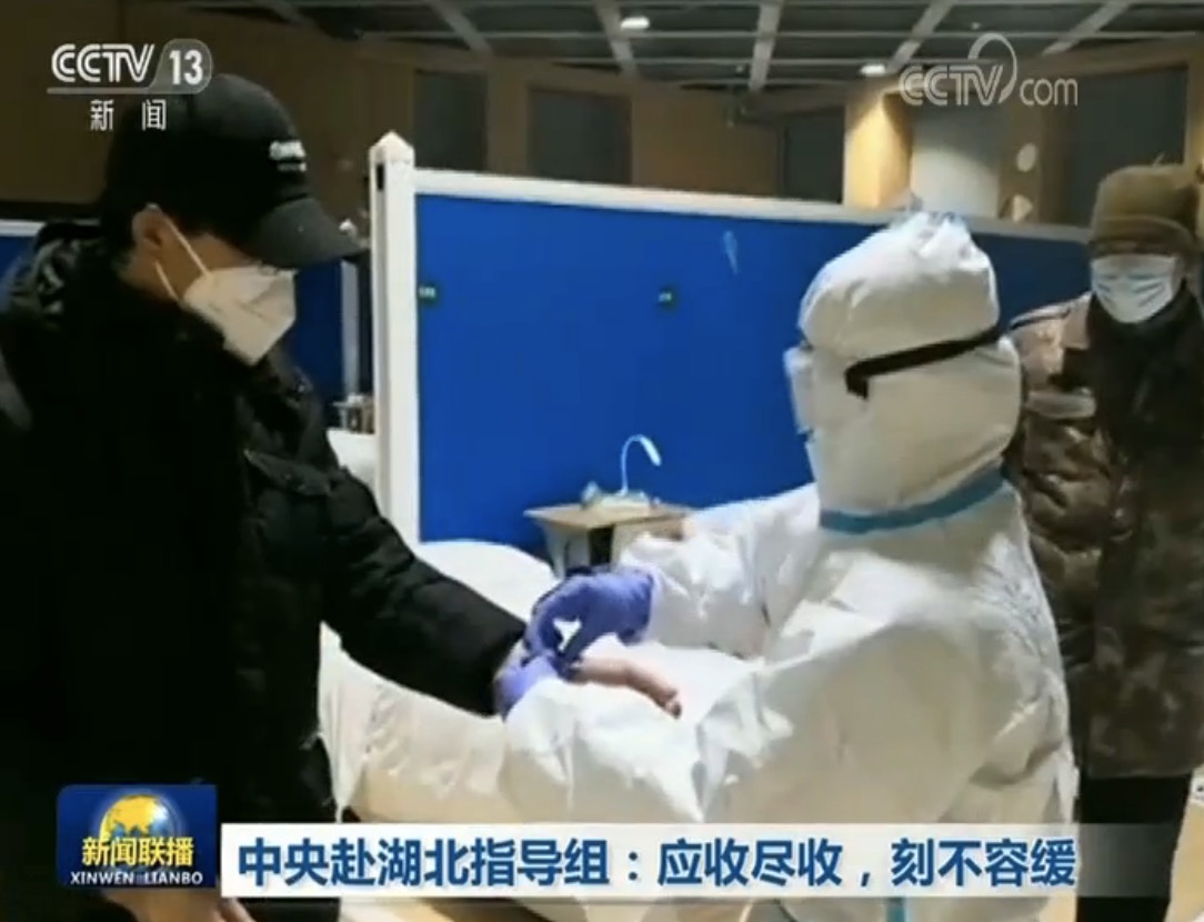 中央指导组陆续从全国调集100余支队伍1.1万余名优秀医务人员驰援武汉,统筹调配使用各方面医疗资源、医用物资,最大限度提高运转救治效率。改造、扩容武汉协和、同济、人民等3家定点医院,集中优势力量救治重症患者。紧急调集20支国家医学救援队,较短时间内建成有4000张床位的3所“方舱医院”,集中收治轻症患者。加快征用宾馆、培训中心以及党校、高校宿舍等作为集中收治隔离场所,增配医疗设备和医务人员,对疑似患者进行隔离治疗,对密切接触者进行医学观察。