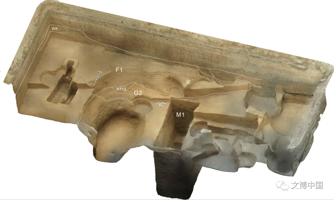 △西围沟G2南段 第一地点探方内G2与西周早期F1、M1的打破关系