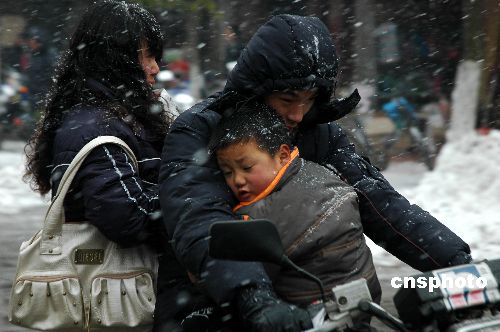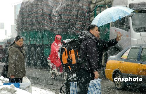 2月1日,安徽巢湖市大雪纷飞,再遭新一轮大雪袭击。顷刻间城市街头又蒙上一层白雪,暴雪让采购年货的市民措手不及,给城市交通带来困难。中新社发 徐振华 摄