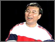 韩乔生:谁谁以迅雷不及掩耳之势,迅速把球摆脱对方防守,一脚射门,球打进了,迅雷不及掩耳之势射门。“盗铃”这两个字,我觉得加得非常好,(孙小梅:也就是说观众给你加得很好?)球迷加得非常好,它这个迅雷不及掩耳盗铃之势,一下就有幽默的效果,就让大家有一种笑的感觉。还有,比如说,区楚良身高1米81,体重28公斤,(孙小梅:这也不是你说的?)后来我查了一下有关我说的话,我确实没说过这话,真的,确实没说过。
