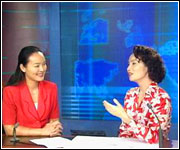 新闻24小时整点播出,应该说是中央电视台第四套节目本次改版的最重要举措。从十年前开播时的一档新闻栏目,到改版后每天24档新闻栏目,这对已经担当十年主播的徐俐来说,又是一次新的挑战。这几天,改版工作紧锣密鼓,徐俐也忙碌异常,于是利用她工作的空档,我们走进了她的工作现场。