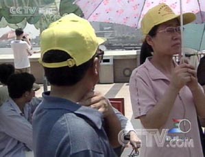 今天南京的气温也达到38℃,中暑指数达到最高的3级,使人容易出现重症中暑。酷热之下的南京长江大桥桥面也出现了“中暑”现象,短短一个小时里,记者就看到有三辆汽车,由于气温太高在大桥上抛锚。不过有关部门已采取一天至少两次对大桥桥面进行洒水降温,防止路面曝晒受损。