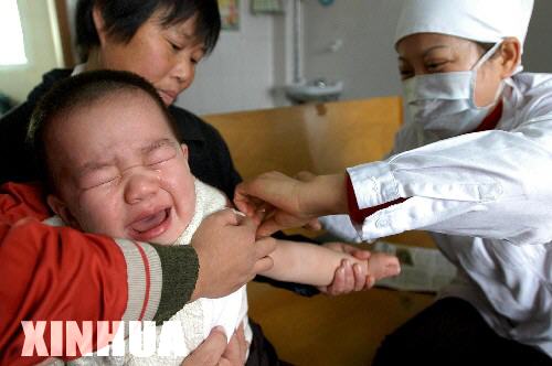 1月28日上午,在合肥市某免疫点,一个孩子在接种流脑疫苗。 |