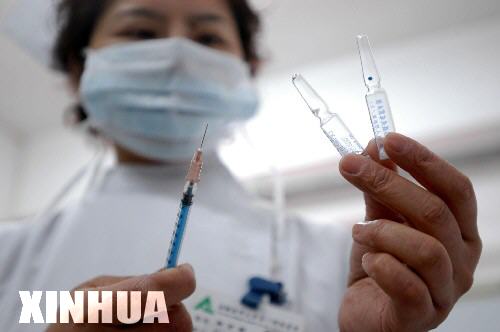 1月28日上午,在合肥市某免疫点,一名医护人员准备为孩子接种流脑疫苗。 |