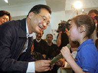 社会多一份关爱 孩子多一份信心 温家宝六一前夕看望中国聋儿康复研究中心的孩子