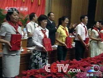 CCTV.com消息(新闻30分):中国少年先锋队第第五次全国代表大会今天在北京闭幕,大会审议通过《中国少年先锋队章程修正案》。今后,少先队员的入队年龄将由7周岁改为6周岁,并正式将广为传唱的《我们是共产主义接班人》确定为中国少年先锋队队歌;同时,确定了新的少先队入队誓词。此外,原少先队的“奖励和处分”办法也修改为少先队的“奖励和批评”。闭幕式上,团中央、教育部和全国少工委还联合表彰了499名全国优秀辅导员。