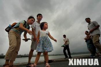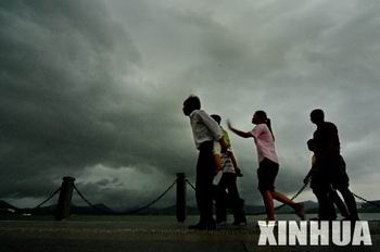 | 8月5日傍晚,游客从西湖白堤上赶着返回。 当日,受台风“麦莎”影响,杭州先是乌云压城,后是大雨倾盆。据中央气象台的消息,今年第9号强台风“麦莎”将于5日夜间到6日上午在浙江平阳到象山一带沿海登陆。 新华社发 |