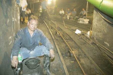 | 失去矿友,一位矿工呆坐在井口,黯然神伤。图片来源:中青在线 |