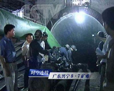 CCTV.com消息(东方时空-时空连线):8月8日上午,《东方时空》记者在发生特大透水事故的广东省兴宁市的大兴煤矿拍到了最新的现场救援场面。据最新得到的消息,井下有102名工人被困。大兴煤矿8月7日下午一点半透水事故发生后,广东省有关部门已经迅速调集大功率的抽水设备加大矿井的排水。据了解,这个煤矿是一家民营矿井,井下被困的102名矿工中有20名左右是本地人,其余都是江西、湖南等外地人。测算表明,透水地点发生在大兴煤矿-420米的掘进工作面上,矿井内存水量可能在1500万立方米到2000万立方米之间,想在短时间内排空的可能性比较低。展开井下救援的同时,当地政府也迅速开展受困人员家属接待安置工作,目前已经安置50名被困人员家属,并对6名悲伤过度的家属送医院安置。