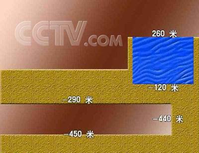 解说:据记者了解,大兴煤矿是一家民营企业,设计开采水平从负290米到负450米,先前的开采工作使得这家煤矿发生事故的一号矿井从负120米到正260米处的巨大空间形成了一个“大水洼”,容积相当于一个中型水库,给下面的开采造成了很大的威胁。而据专家初步分析,这次透水事故可能就发生在一号矿井负440米的作业层面。