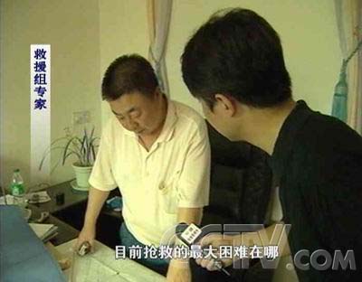 [同期声]采访抢险指挥部专家:目前最大的困难就是出水点不能确定。