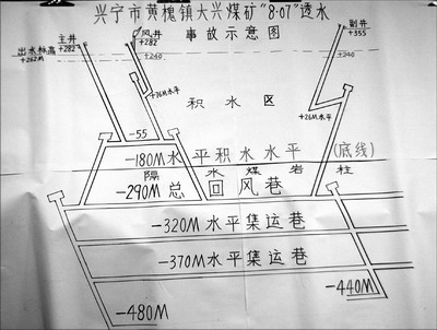 记者11日11时在事故现场抢险调度室看到,抢险人员正在水位示意图上描示监测的最新水位情况,标图上显示,11日晨6时,主井水位为+233米多,比10日下午5时水位下降了3米左右,但到11日10时,主井水位又回升至+235米多,上涨了1米多。副井水位11日继续下降,10日上午8时,副井水位为+240米,到11日10时,副井水位下降至+233米,下降7米左右。