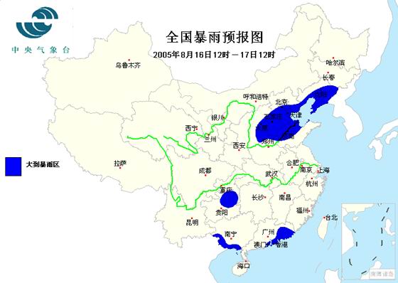 CCTV.com消息:中央气象台16日上午十点钟发布暴雨预报: