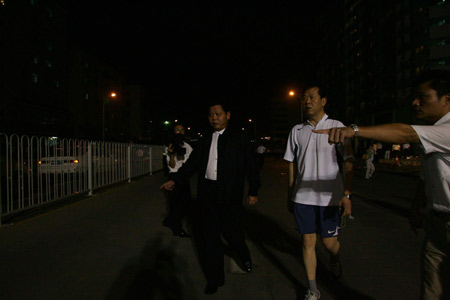 | 深圳市长许宗衡(左)和深圳市政府秘书长唐杰(中)赶到现场 |