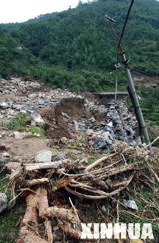 安徽省金寨县张冲乡村民江涛家的房屋被山洪冲毁(摄于9月5日)。新华社记者舒继华