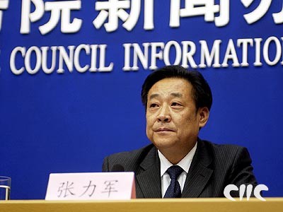 | 国家环保总局副局长张力军在发布会上 |